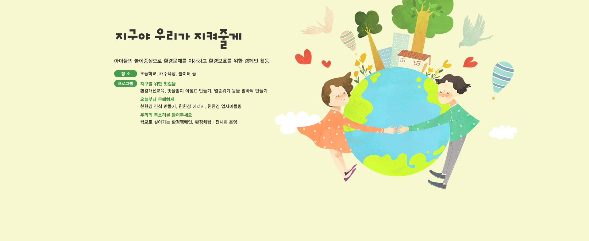 놀이와 체험을 통해 환경교육을 배우는 지구를 지키는 히…