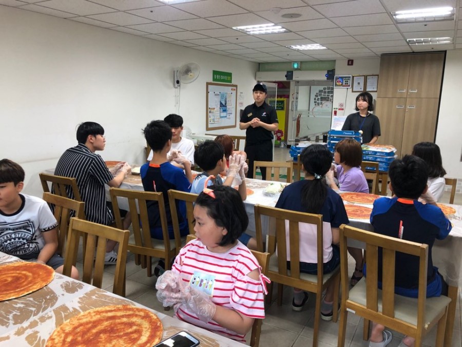 7월 30일 도남사회복지관에서는 초록우산 어린이재단과의 연계를 통하여 '2019 출동! 도미노 희망 파티카 피자교실'을 진행하였습니다. 요리체험을 통하여 자기효능감과 건강을 증진하기 위한 이번 프로그램에는 꾸러기방과후교실 아동 17명이 참여하였습니다. 직접 피자를 만들어보고 오븐에 구워보는 등 새로운 경험을 해볼 수 있는 시간이었습니다. 프로그램을 진행할 수 있게 도와주신 초록우산과 도미노 피자 직원선생님께도 감사의 말씀을 전합니다^^