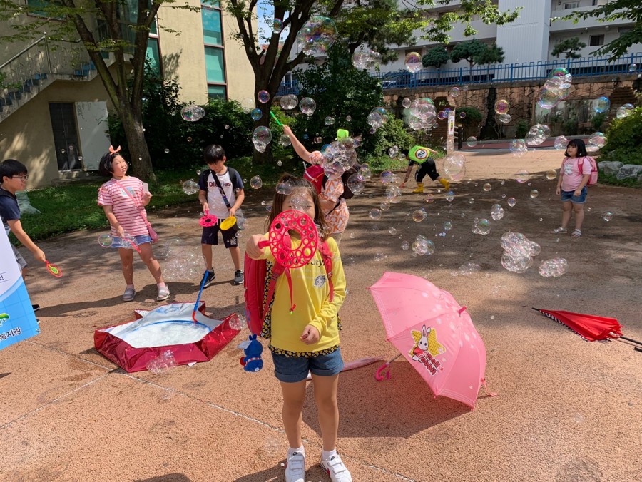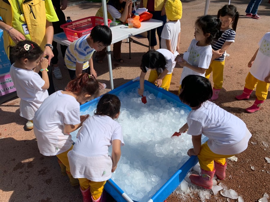 9월 5일(목) 시끌벅적 마을놀이터 "시원한 여름놀이터" 라는 주제로 아이들과 얼음속 간식찾기놀이, 비눗방울놀이,