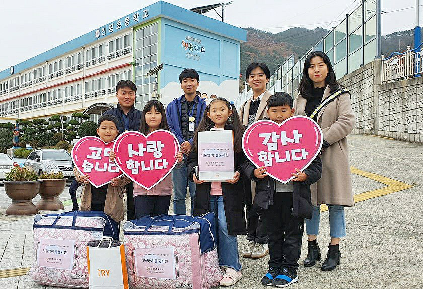 이 후원금은 지역 내 어려운 이웃들에게 겨울용품 구입에 사용되었으며, 지난 11월 27일 교사와 2,3학년 학생임원들이 직접 3세대에 겨울이불, 내의, 방한내피 등을 지원하였다.