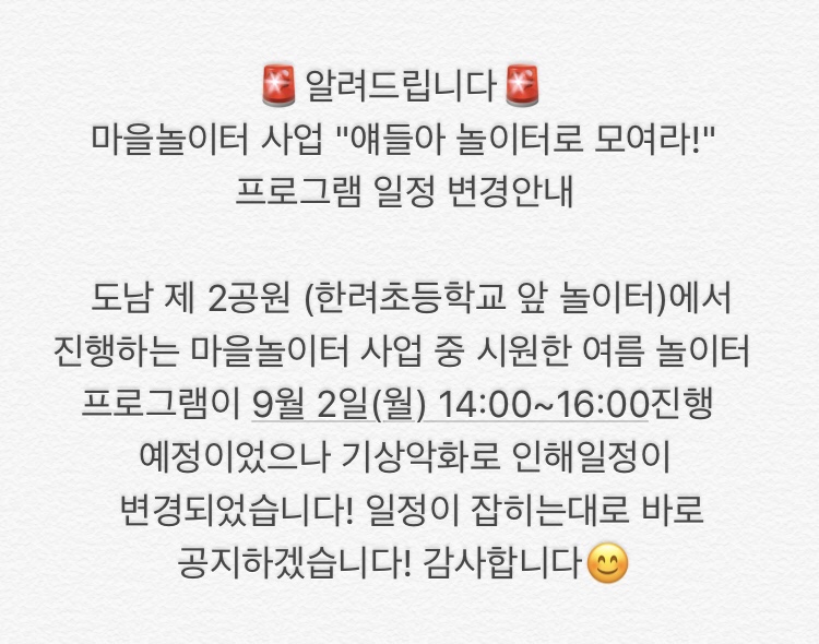 마을놀이터-시원한 여름놀이터 일정변경 공지