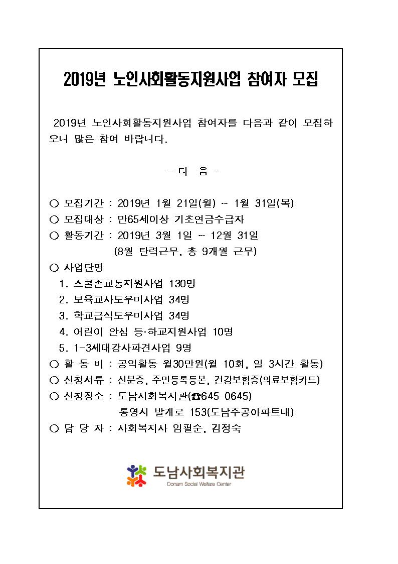 2019년 노인사회활동지원사업 참여자 모집 안내