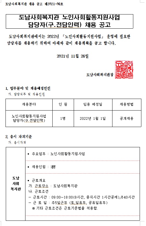 (채용공고2021-06호) 노인사회활동지원사업 담당자 채용공고