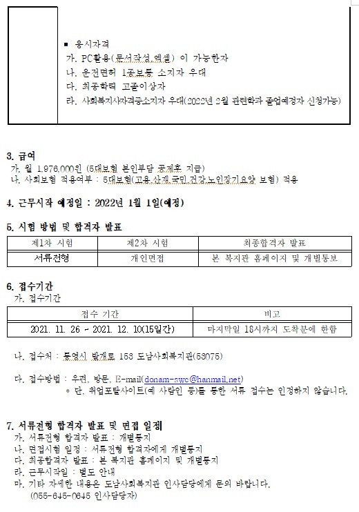 노인사회활동지원사업 담당자 채용에 따른 공고를 하고자 합니다.