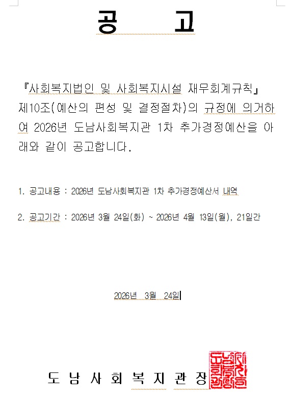 (2026-07) 2026년 도남사회복지관 1차 추가경정예산서 공고