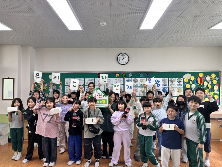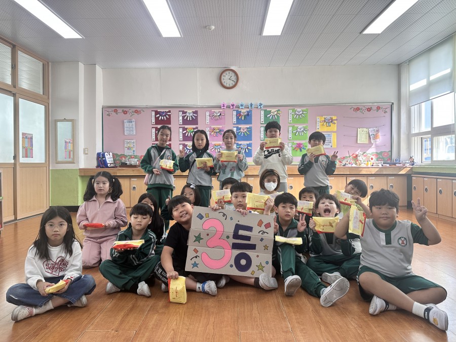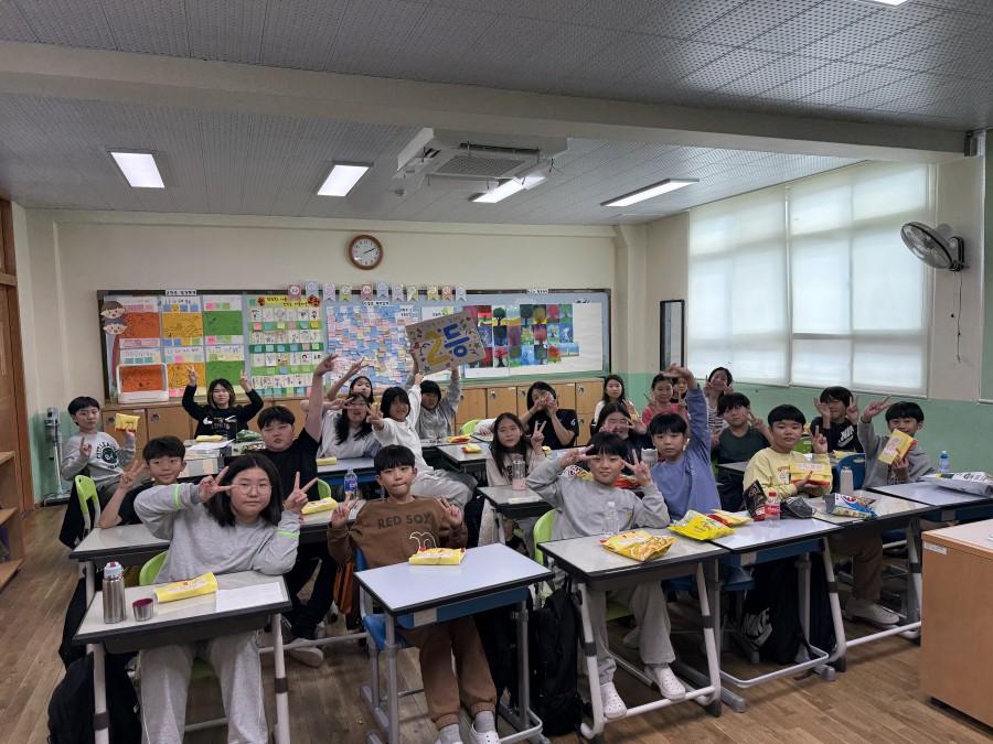 일주일 동안 진행된 캠페인 결과로 1등 학년은 아이들이 직접 고른 뿌링클 & 양념반 후라이드반 치킨, 2~3등 학년은 햄치즈토스트를 맛있게 즐겼습니다