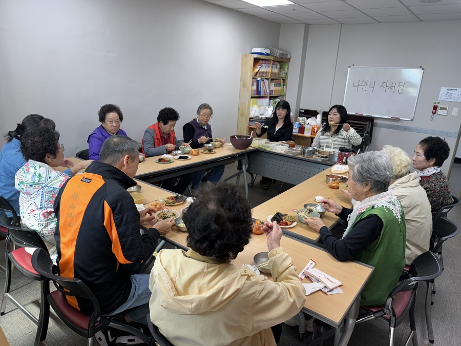 3월 ~ 10월 주 2회 매주 월요일 오후 1시 30분 ~ 3시 30분. 수업을 진행하여 지난 10월 27일에 마무리 하면서 비빔밥데이를 진행하였습니다. 참여자들이 맛있는 비빔밥 재료를 하나씩 만들어 와서 함께 맛있게 나누어 먹었습니다.