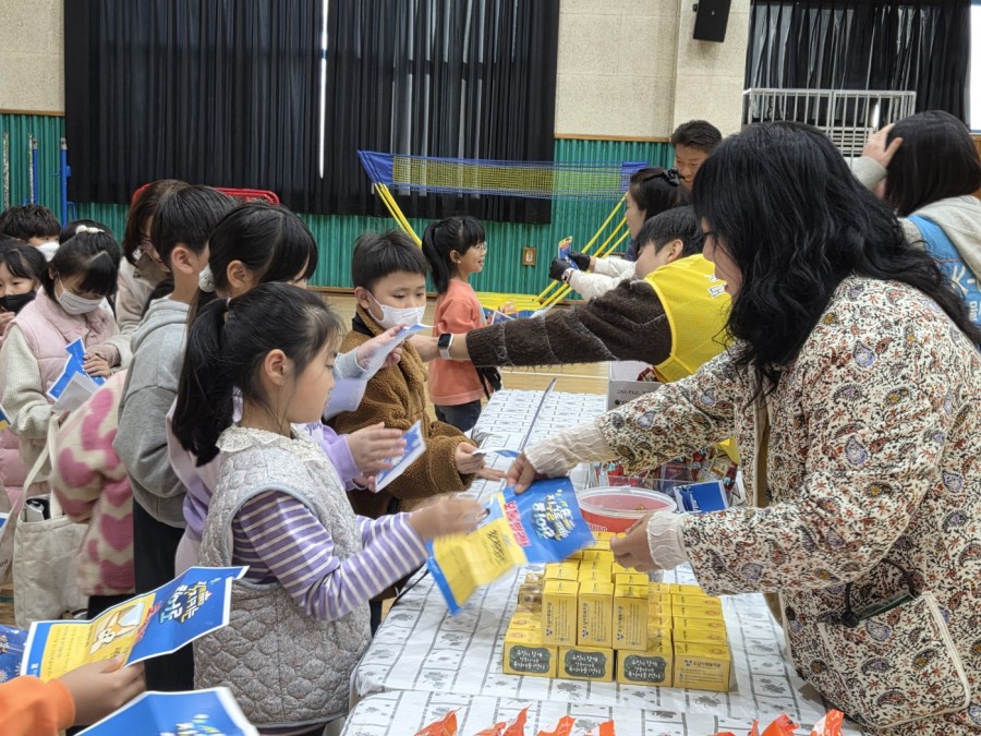 한려초등학교 체육관에서 전교생과 함께