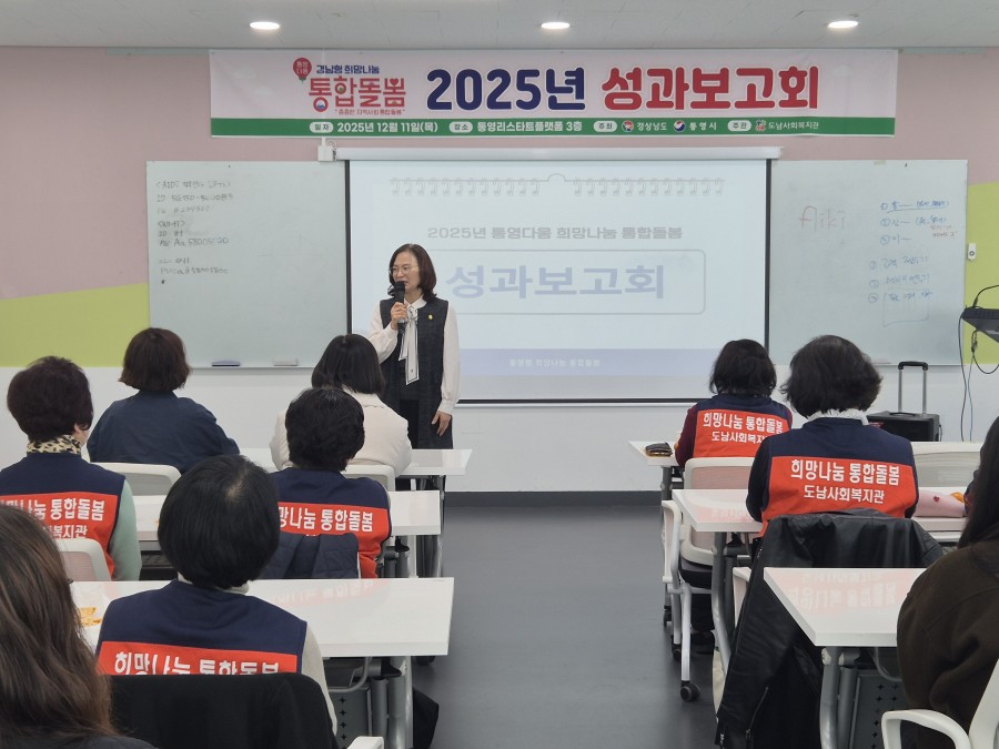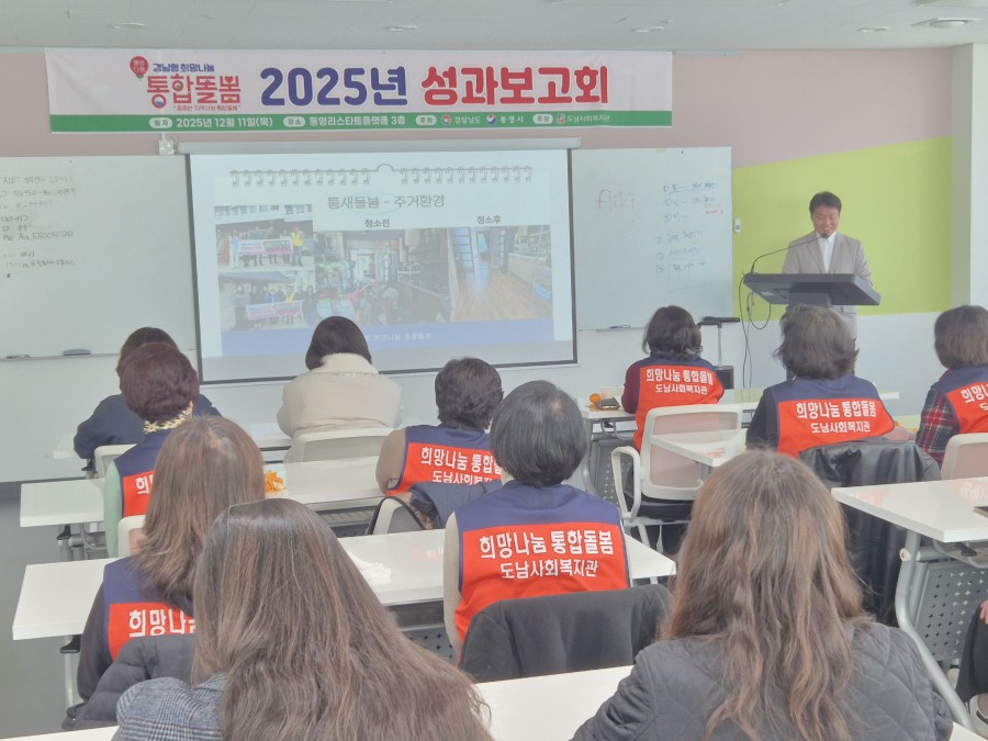지난 11일 통영리스타트플랫폼에서 도남사회복지관(관장 배은영) 주관으로 시 담당자, 읍면동주민센터 복지담당자 및 돌봄활동가 등이 참여한 가운데 ‘경남형 통합돌봄 사업’의 한 해 성과를 돌아보는 성과공유회를 개최했다.