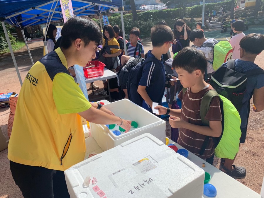 9월 5일(목) 시끌벅적 마을놀이터 "시원한 여름놀이터" 라는 주제로 아이들과 얼음속 간식찾기놀이, 비눗방울놀이,