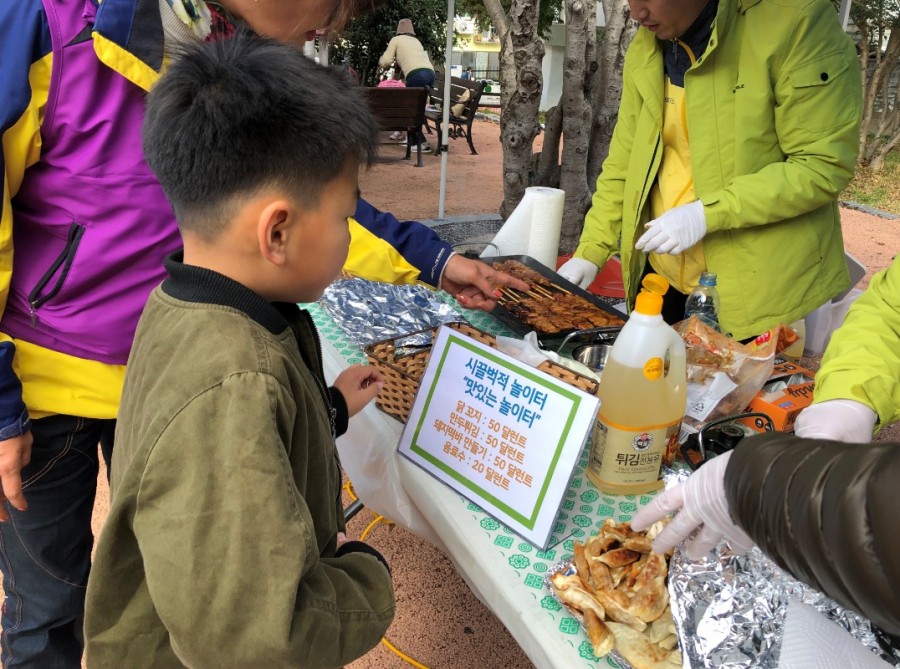 11월 19일 도남사회복지관은 도남 제2공원(한려초앞 놀이터)에서 시끌벅적 마을놀이터 "맛있는 놀이터"프로그램을 진행하였습니다. 맛있는 놀이터에서는 다양한 미션을 통해 달란트를 획득하고, 획득한 미션으로 맛있고, 안전한 간식으로 바꿔먹으며 아이들과 지역주민들과 다함께 즐거운 시간을 보냈습니다.