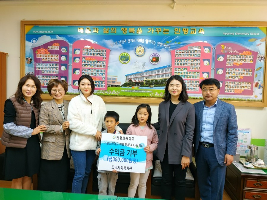 인평초등학교(교장 김보상)에서 진행한 가을정의학교&나눔장터 수익금(금350,000원정)을 지역사회복지후원금으로 도남사회복지관에 10월 21일 전달하였다.