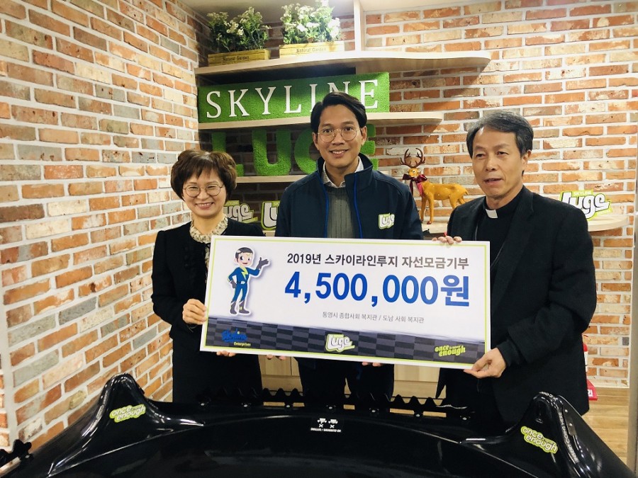 모금액 전달식은 통영 스카이라인 루지, 도남사회복지관, 통영시종합사회복지관과 함께 진행되었습니다.