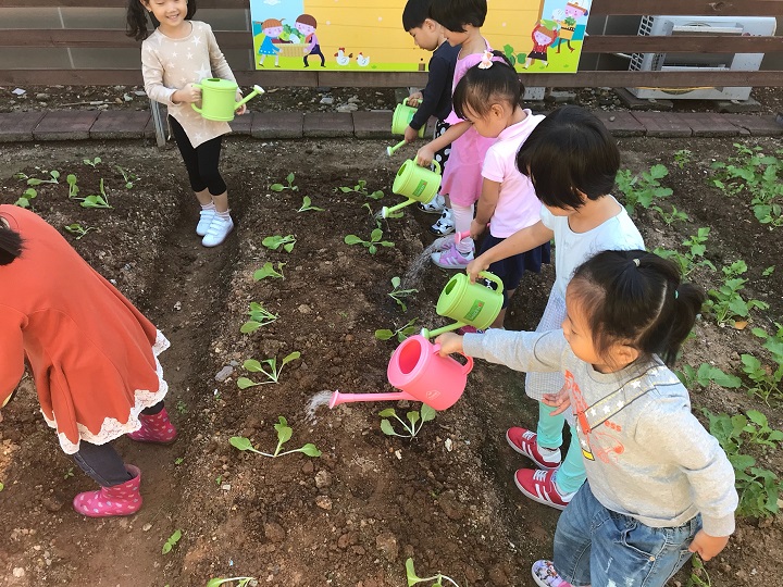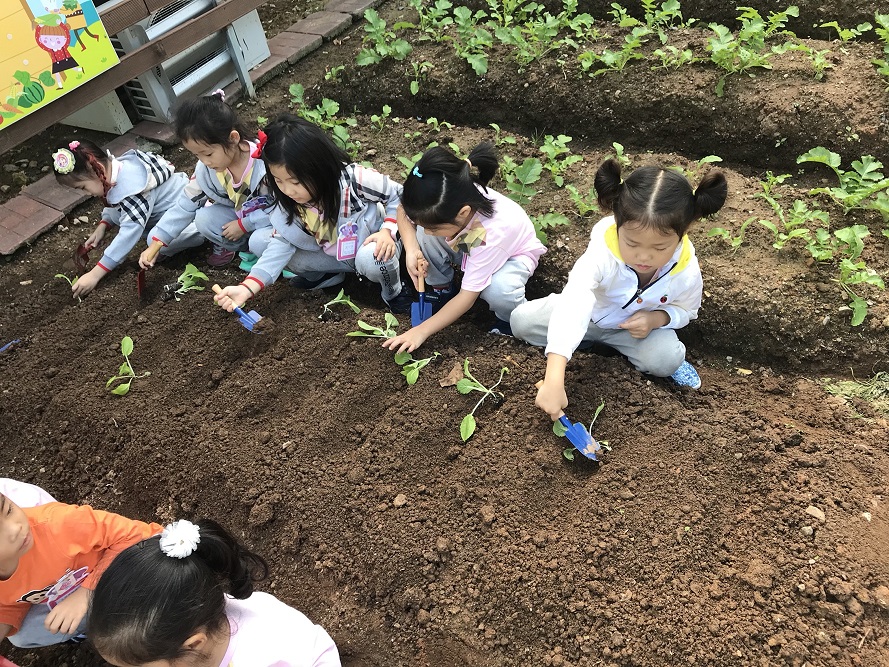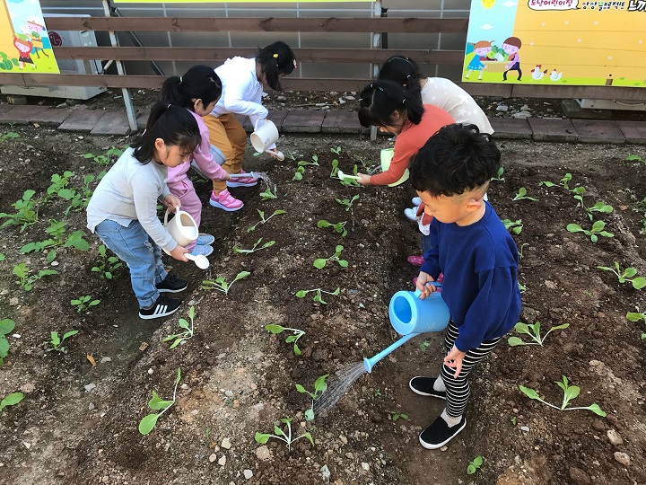 텃밭체험에는 은빛나래봉사단 어르신들과 아이들과 함께 배추모종을 심고 물을주는 활동과