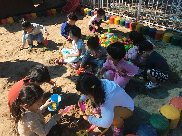 가을동산을 만들어보는고 모래놀이 장난감 자유활동이 진행하였습니다.