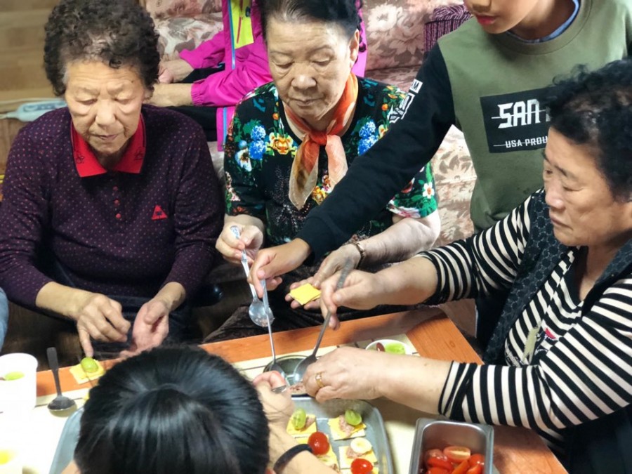 이날 학생들과 어르신이함께 까나페를 만들어보는 시간을 가졌습니다. 또 두룡초등학교 학생들은 어르신들을 위해 장기자랑을 준비하여 어르신들에게 행복감을 드릴 수 있었습니다.