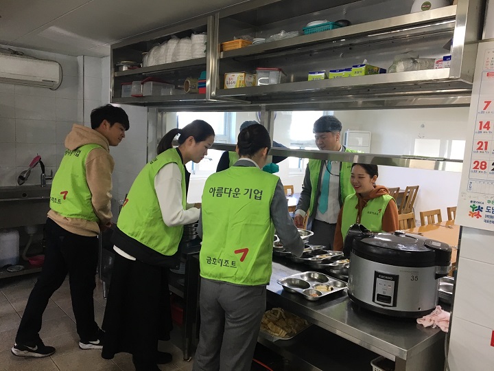 지난 1/30일(화) 금호 통영 마리나리조트 임직원 9명이 도남사회복지관 참 좋은 경로식당에 방문하여 직접 식사배달 도시락 포장 및 배달, 경로식당 배식봉사에 함께해주셨습니다 또한, 경로식당 이용 어르신들의 급식에 사용해달라고 "백미"를 전달해주셨습니다.