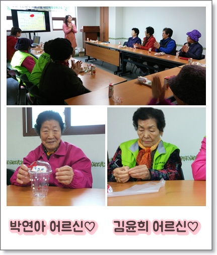 교육 뿐만 아니라 어르신들에게 자그마한 선물까지 전해주신 원장님께 감사의 인사를 전해드리고 어르신들 또한 교육 시간 내내 웃음을 잃지않고 집중하시는 모습이 너무 아름다웠습니다♥