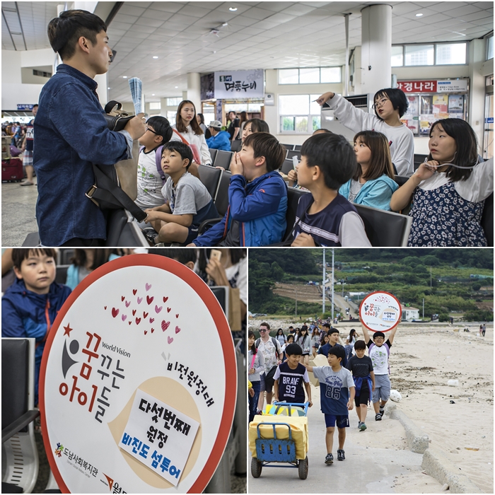 9월 23일(토) 에는 우리 꿈꾸는 아이들과 함께 통영의 수많은 아름다운 섬들중 비진도를 함께 탐방하고 왔습니다. 아침 일찍부터 비진도로 들어가는 여객선에 몸을 실어, 여객선에서 부터 여러가지 게임들과, 이야기를 나누며, 비진도 섬투어를 떠났습니다.