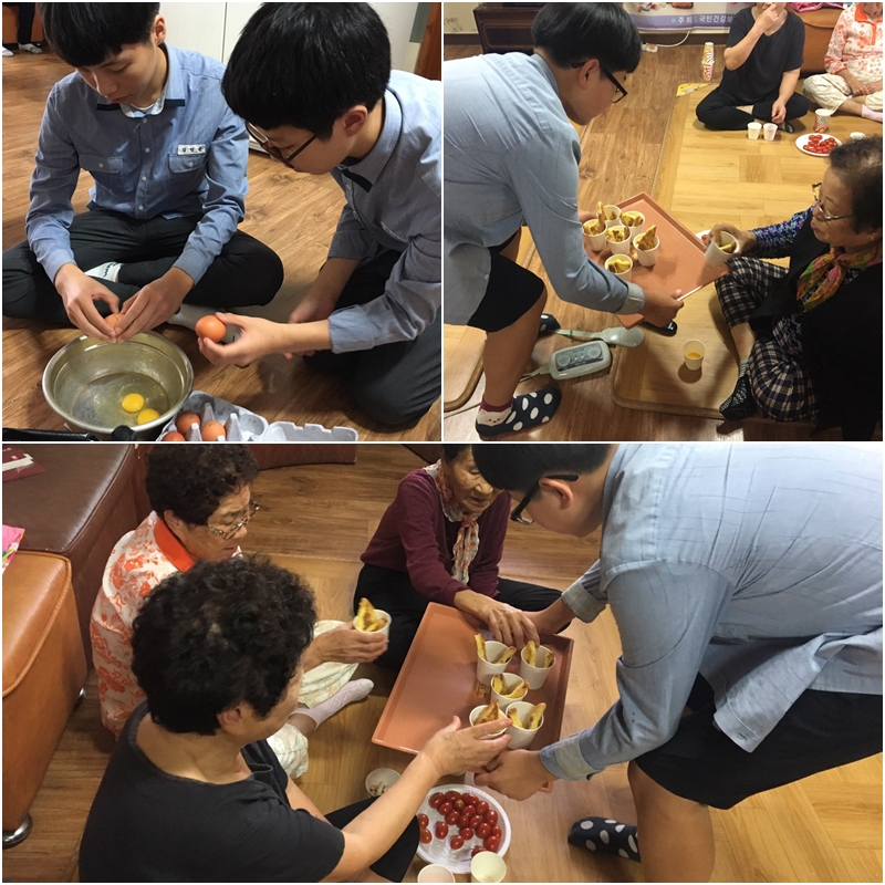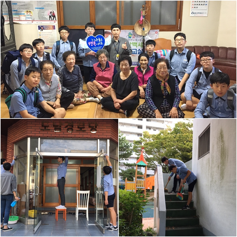 지난 10월 11일(수)에는 통영중학교 학생들이 도남경로당을 방문하여 경로당을 이용하시는 어르신들께 직접 맛있는 음식도 대접해드리고, 경로당 청소는 깨끗하게 도와드리고 왔습니다. 어르신들이 친손주들 처럼 반갑게 맞이 해주셔서 학생들도 신이나 이날 하루, 참 뜻깊게 보람차다는 이야기를 많이 하였습니다. 자주 찾아뵈어, 어르신들의 말동무도 해드리겠다는 인사를 드리고 돌아왔답니다.