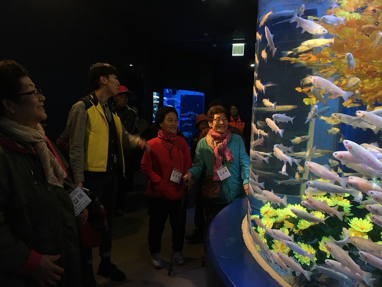 이날 문화체험활동 야외나들이는 전남 여수로 이동하여 일상에서 쉽게 접할 수 없는 다양한 해양생태계의 모습을 관람할 수 있는 여수 아쿠아플라넷을 관람하였습니다. 특히 이번 문화체험 활동에는 도남여성의용 소방대 6명이 함께 동행하여 거동이 불편한 어르신들을 도왔습니다.