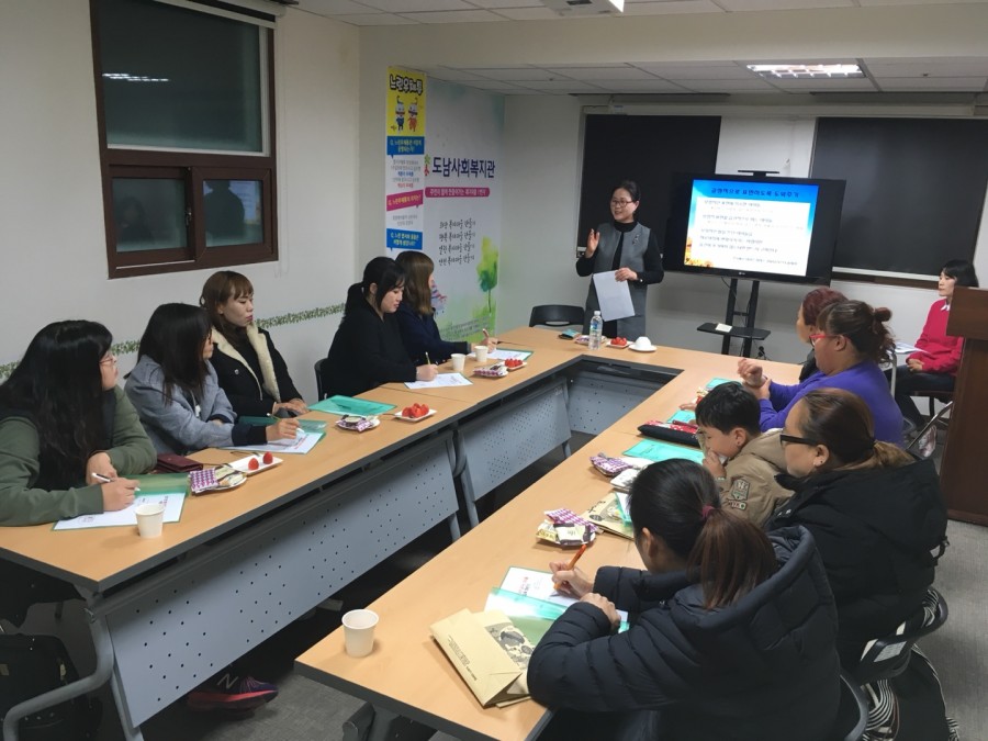 11월 30일(목) 저녁시간에는 도남사회복지관어린이집 이원숙 원장님과 보호자분들이 함께 "아이들과의 행복한소통-긍정의언어"라는 주제로 이야기 나눔의 시간과, 교육의 시간도 함께 가졌습니다. 참여하신 보호자 분들 중 한분께서는 "아낌없는 격려의 힘을 생각하고, 아이들에게 많은 칭찬과 사랑을 주는 것에 주저 하지 않겠다"라는 참여 소감을 말씀해주시기도 하였습니다.