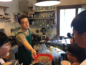첫 날 8월16일에는 봉수로에 위치한 커피집 우리동네 대표님과의 만남을 통해 직업 소개와 커피에 대해 알아보고 커피가 만들기전 원두를 보고 이후 사장님과 함께 같이 커피를 만들어 마셔보는 시간을 가졌습니다. 이날 학생 한명이 “커피가게에서 주문해서 마셔보기만 했는데 직접 보고 만드는 것을 보아 너무좋았어요” 라고 소감을 밝히며 새로운 경험에 대한 긍정적인 표현을 하였습니다.