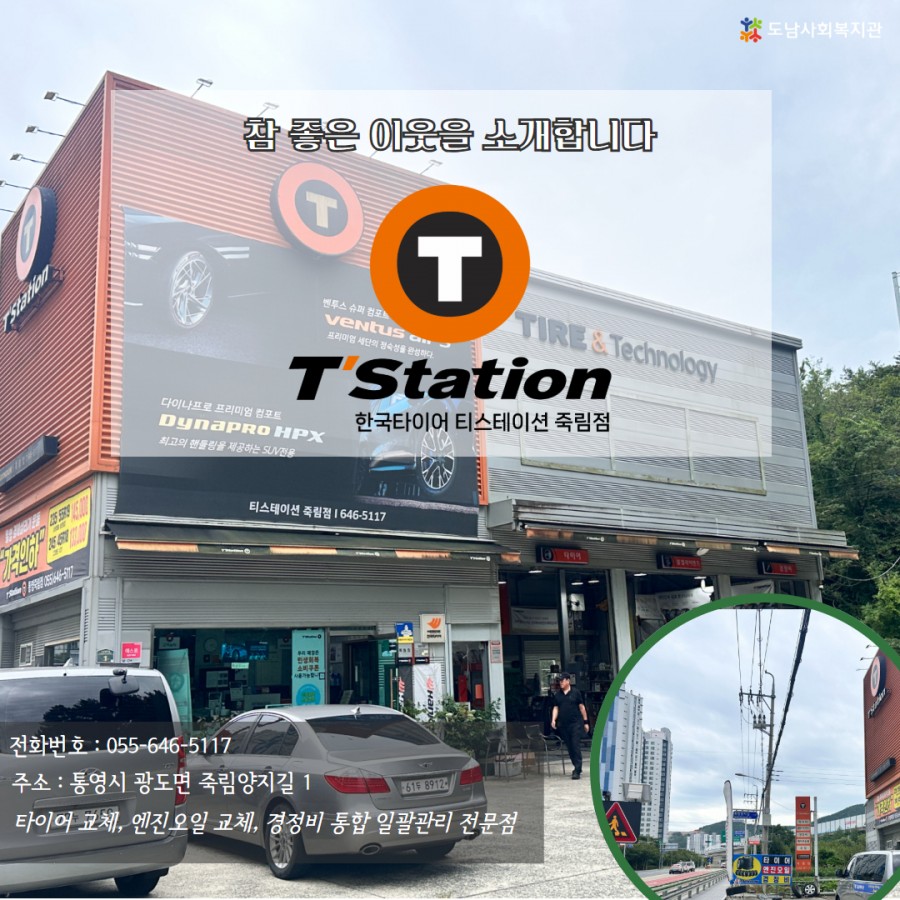 한국타이어 티스테이션 죽림점은 타이어 교환부터 경정비, 타이어 휠, 자동차 용품까지 한 곳에서 편리하게 만나볼 수 있는 곳입니다.
