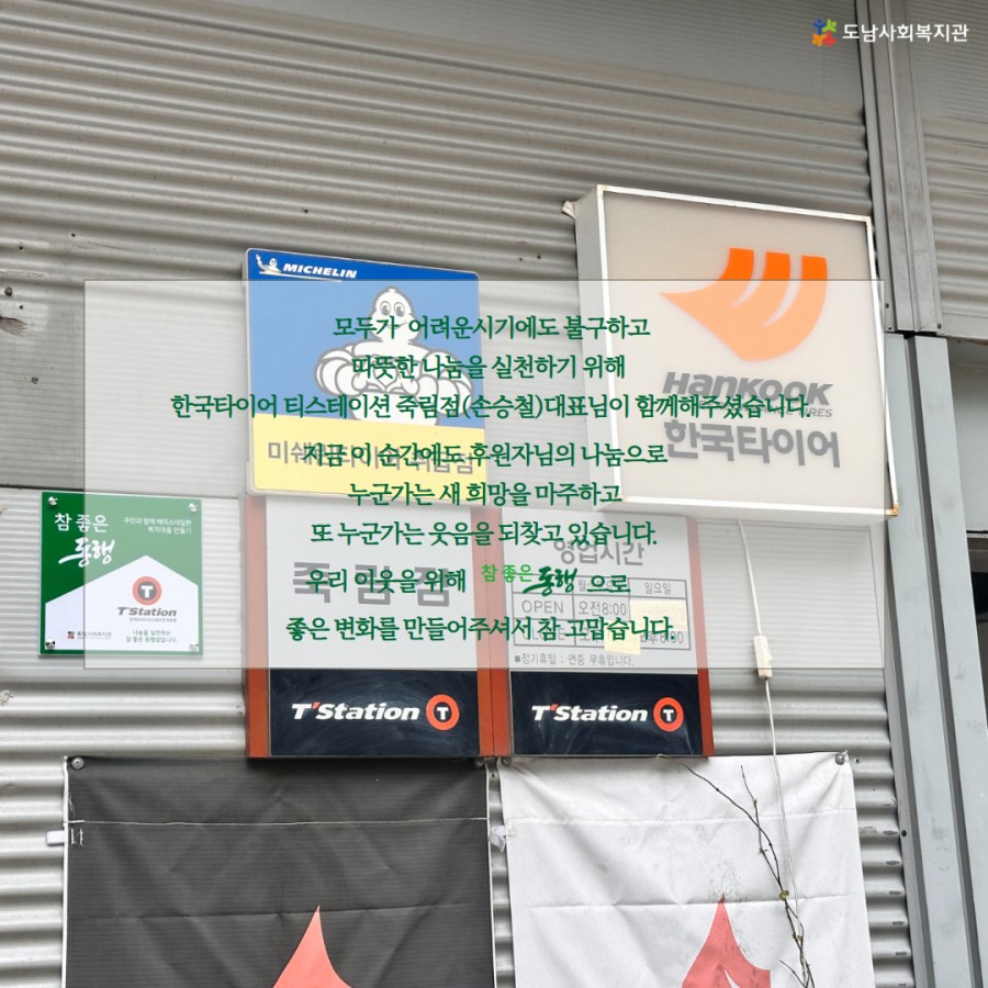 한국타이어 티스테이션 죽림점(대표 손승철)에서 도움이 필요한 이웃을 위해 참 좋은 동행에 함께해주셨습니다.