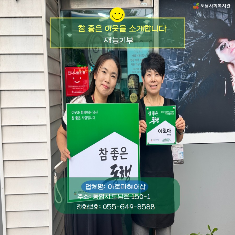 아로마 헤어샵의 재능기부 활동으로 도움이 필요한 이웃분들이 아로마 헤어샵을 방문해 무료 컷트 서비스를 자유롭게 이용하실 수 있게 되었습니다.