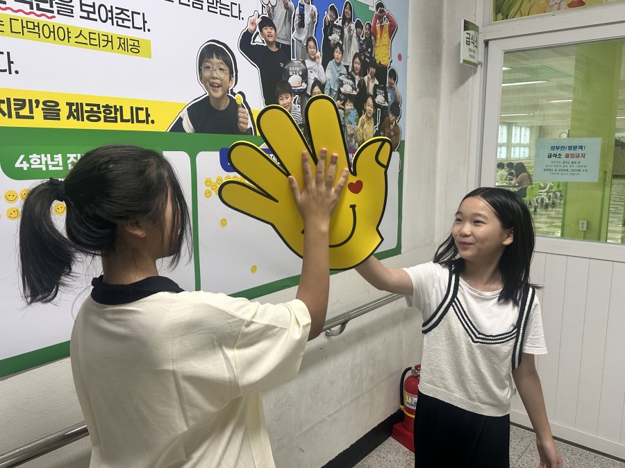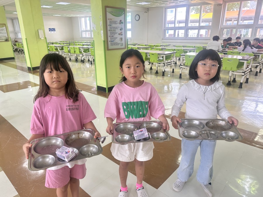 한려초등학교에서 잔반줄이기 캠페인이 뜨겁게 진행 중입니다!
