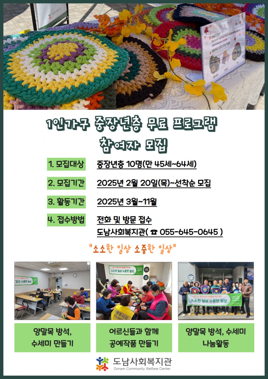 1인가구 중장년층 참여자를 모집합니다.