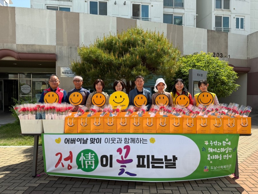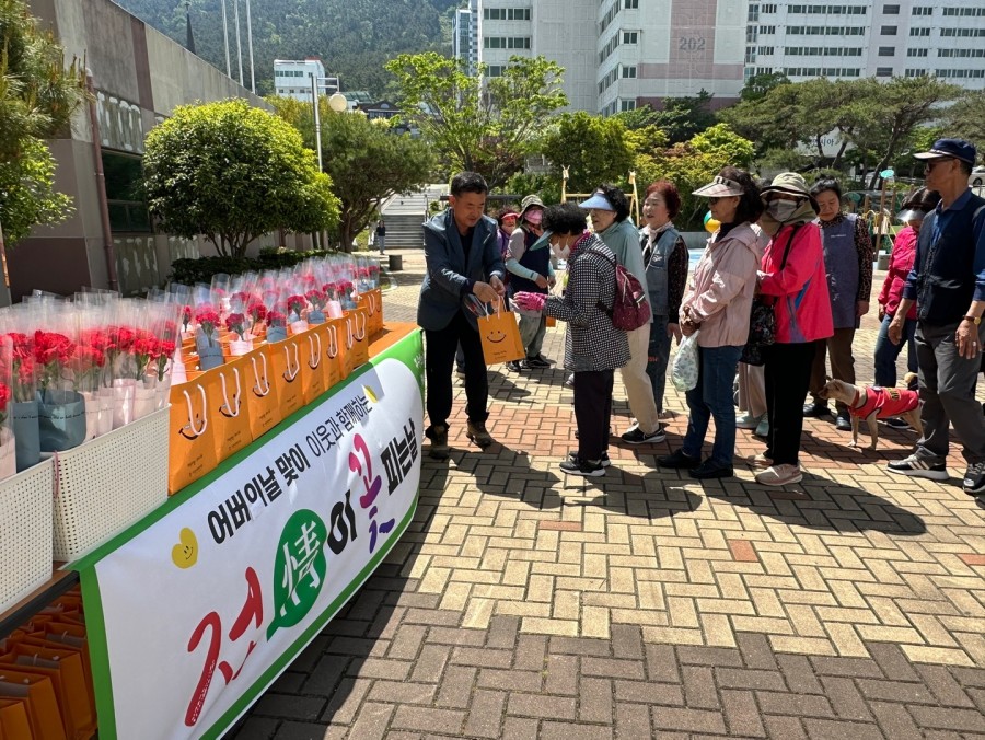 미수휴먼시아 2단지 주거행복지원센터 지원으로 어버이날을 맞이하여 65세 참여주민에게 카네이션과 모듬떡 나눔을 진행하였습니다.