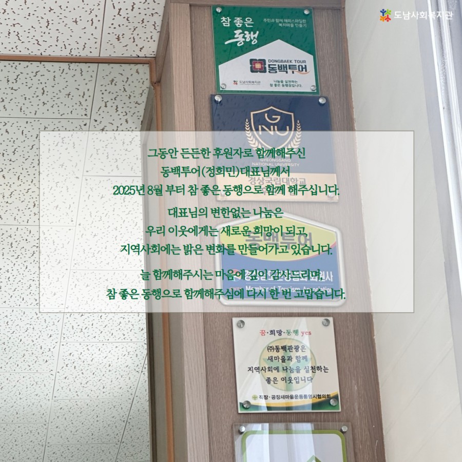 그동안 든든한 후원으로 함께해주신 동백투어에서 '참 좋은 동행' 사업으로 이웃과 더 깊은 동행을 이어갑니다.