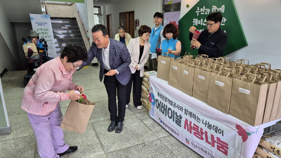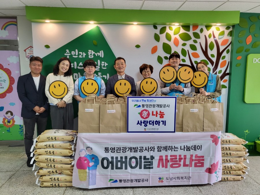5월 8일 어버이날을 맞이하여 통영관광개발공사에서 지역 내 취약계층 어르신께 감사의 마음을 담은 카네이션과 파스, 떡이 담긴 물품꾸러미 100세트와 백미 15포를 도남사회복지관(관장 배은영)에 전달하였으며, 물품꾸러미를 전달받은 김○선 어르신은 “이런 날이 되면 항상 혼자여서 외롭고 서럽기만 했는데, 누군가에게 감사하다는 인사와 선물을 받으니 너무 기분이 좋다”며 눈물을 보이기도 하였습니다.