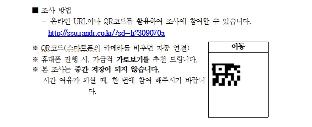 - 온라인 URL이나 QR코드를 활용하여 조사에 참여할 수 있습니다.