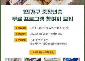 1인가구 중장년층 프로그램 참여자 모집(소일소일)