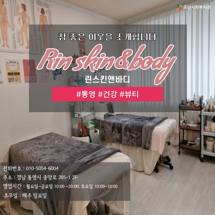 린스킨앤바디는 통영 북신동에 위치하고 있는 건강, 뷰티 전문점입닏.