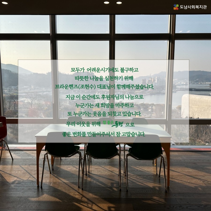 참 좋은 동행에 브라운핸즈(조현수)대표님이 함께 해주셨습니다.