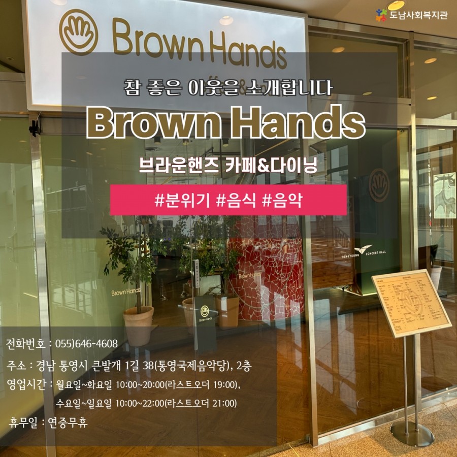 브라운핸즈는 통영 국제음악당 2층에 위치하고 있는 브런치카페 입니다.
