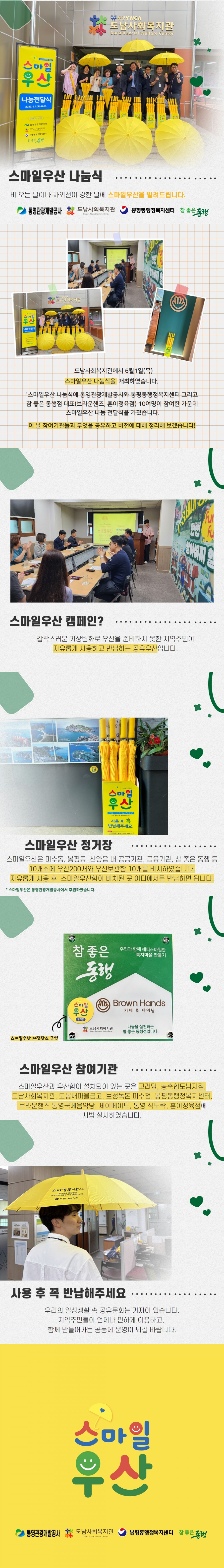 *스마일 우산 캠페인 실천을 위해 통영관광개발공사에서 스마일우산을 후원해주었습니다.