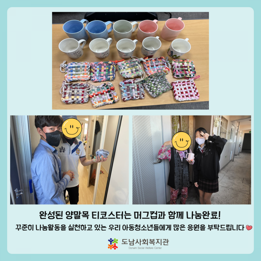 통중, 통여중 학생들의 정성이 가득 담긴 예쁜 티코스터는 머그컵과 함께 나눔을 실천하였습니다~