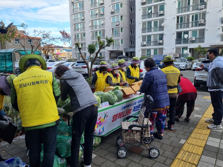 행복위원과 봉숫골1004가 함께 바자회를 진행하여 그 수익금으로 그룹홈에 김장김치와 다과를 지원하였습니다.