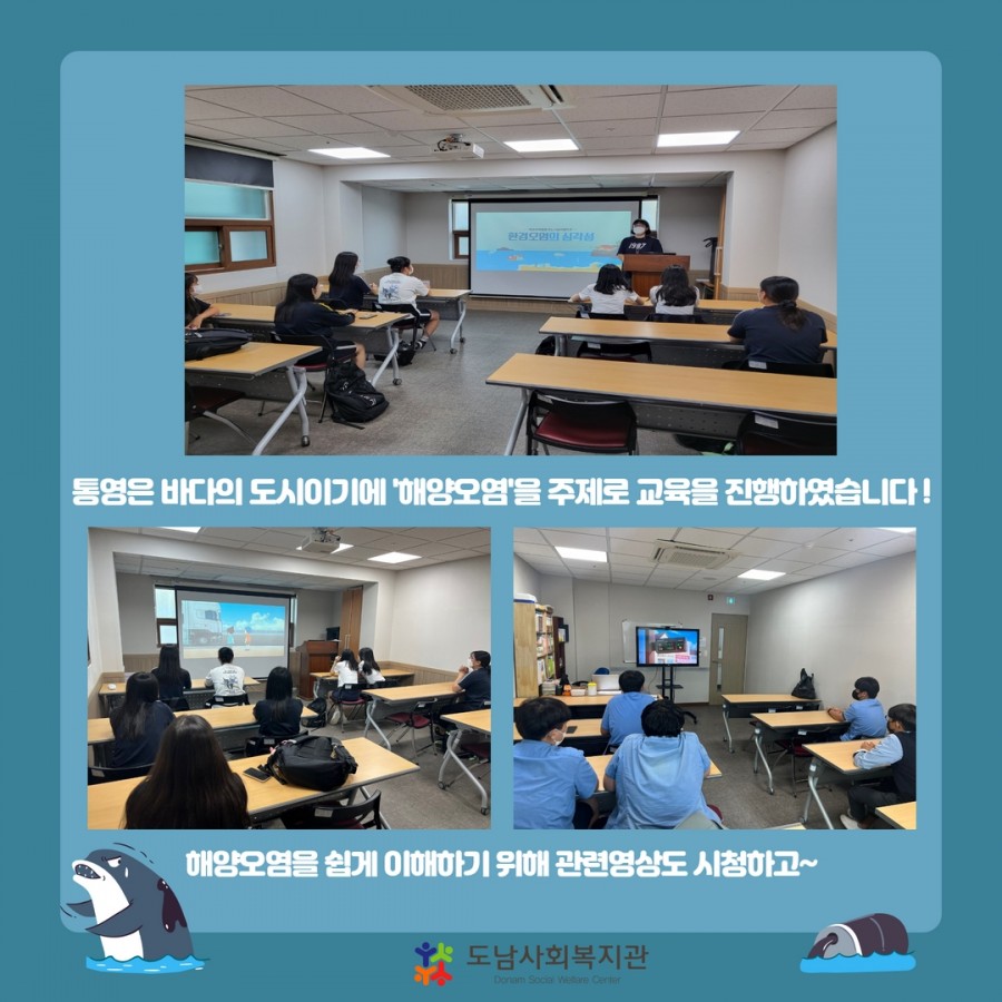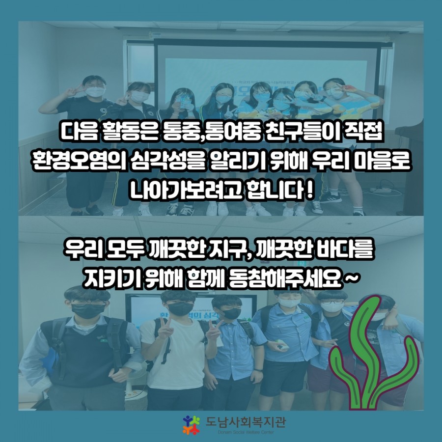 그래서 이번 다섯번째 활동에서는 통중, 통여중 친구들과 해양오염의 심각성에 대해 알아보고, 함께 이야기를 나눠보는 시간을 가졌습니다!