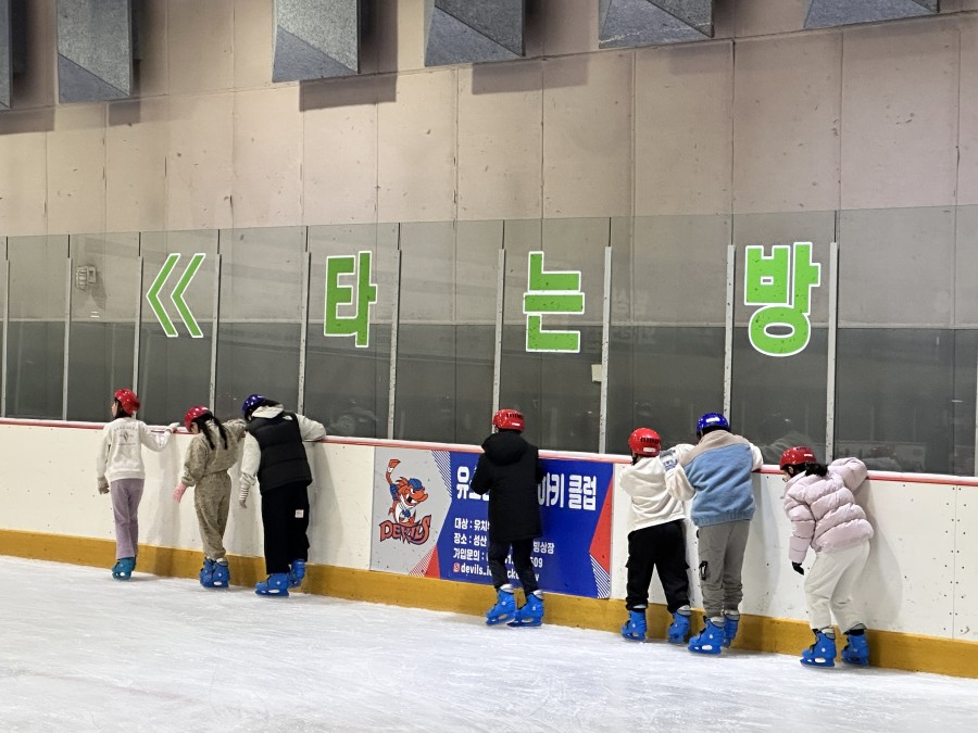 빙판 위에 선 아이들은