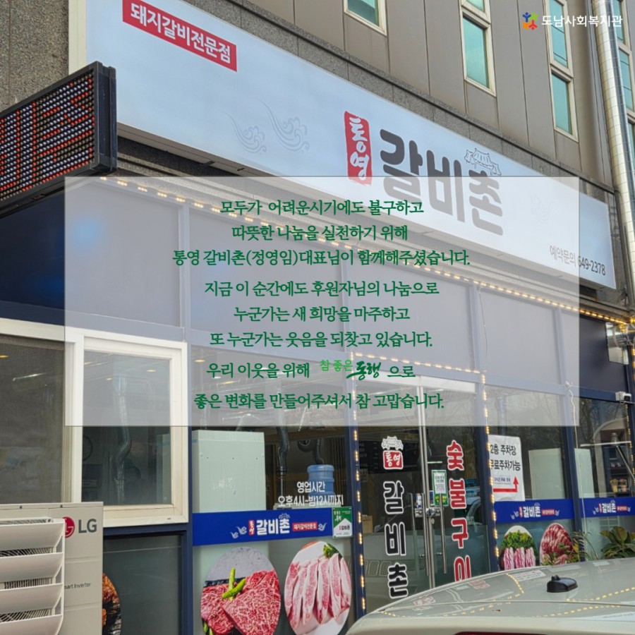 통영 갈비촌(대표 정영임)에서 도움이 필요한 이웃을 위해